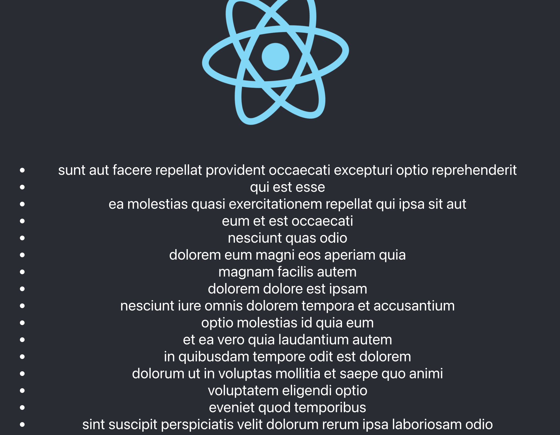 ブラウザでlocalhost:3000にアクセスしてみましょう。以下の通りJSON Placeholderに投稿されているtitleが10つ取得され、表示されていることがわかります。