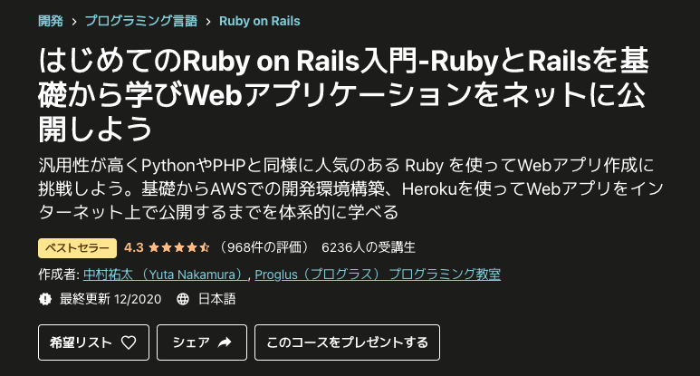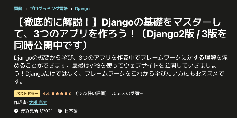 Django3に対応したUdemyの日本語講座は3つほどしか存在しません。