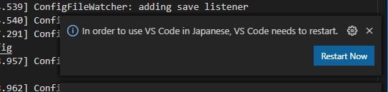 - VScodeの右下に、以下が出力される。再起動が必要です、ということなので「Restart now」を押下