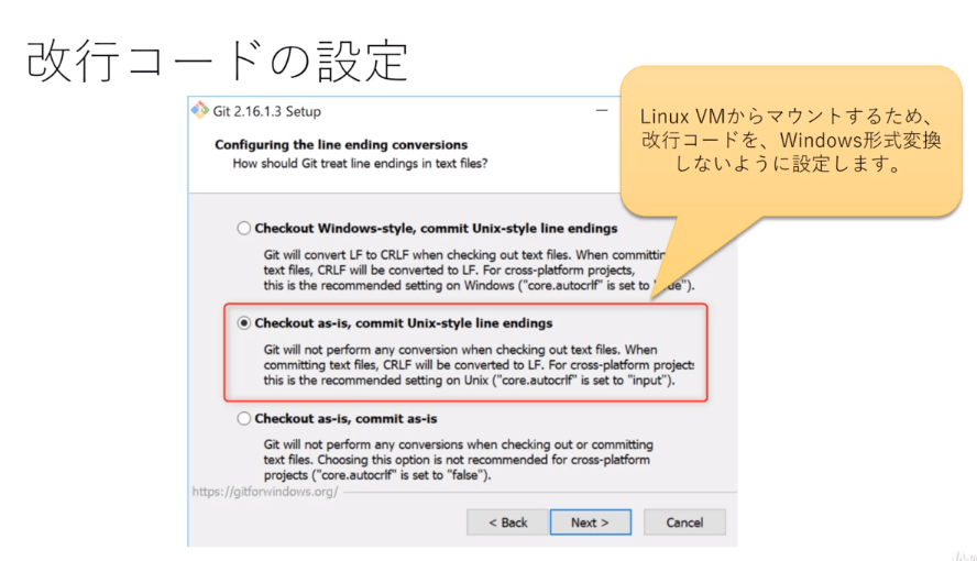- 仮想マシンからファイルを利用することが想定される場合は、仮想マシン側がUnixスタイルになっている。